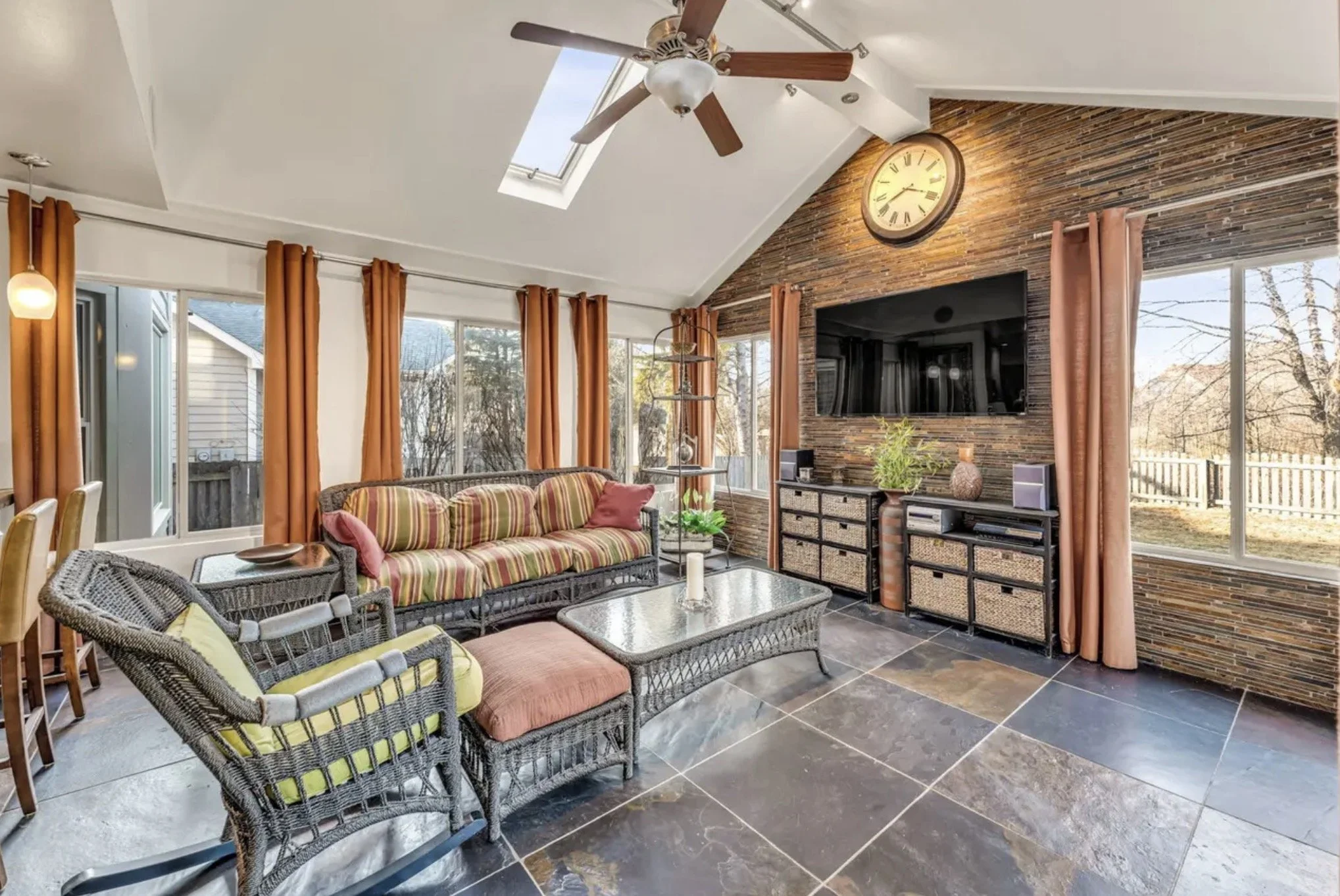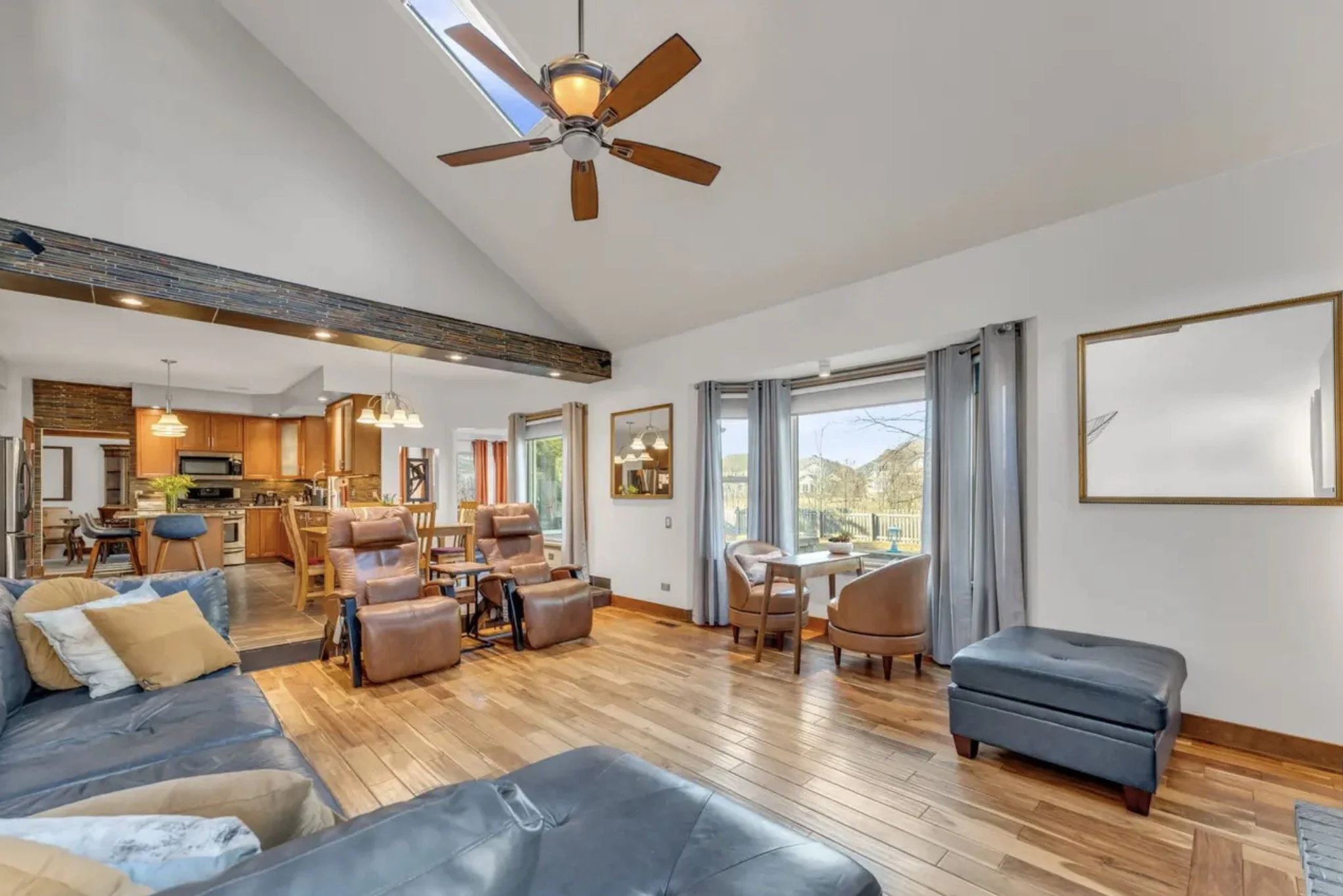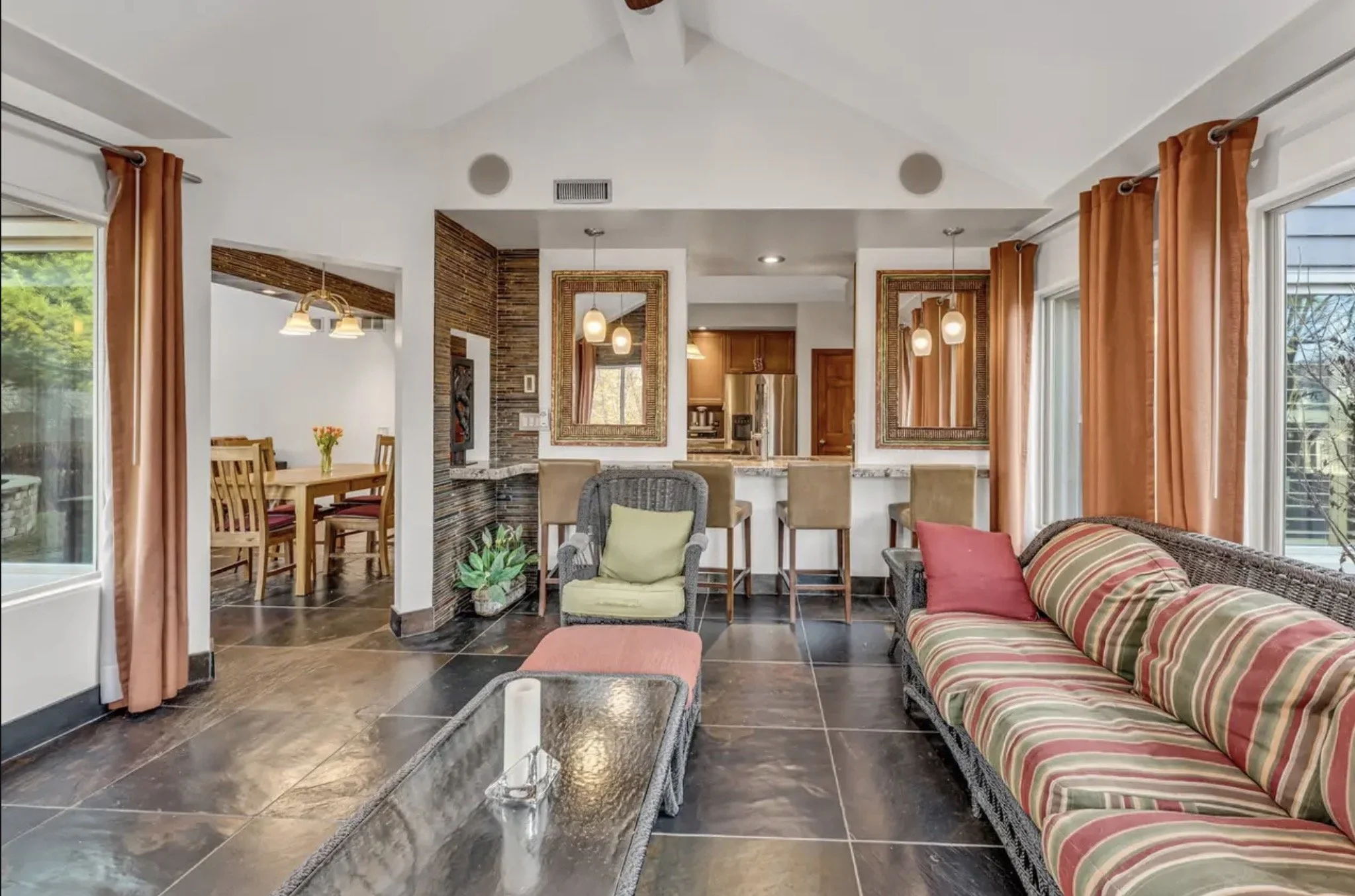 Every surface was carefully reimagined. Taller cabinetry and natural stone countertops bring new presence to the kitchen, while a redesigned island invites daily gathering. Slate wall tile introduces architectural depth, carrying through the space with quiet consistency. Underfoot, slate and teak flooring establish a balanced rhythm, grounding the rooms while allowing light to move freely. No walls were moved.Yet the entire first floor feels transformed, a renewed home achieved through finish-level precision.