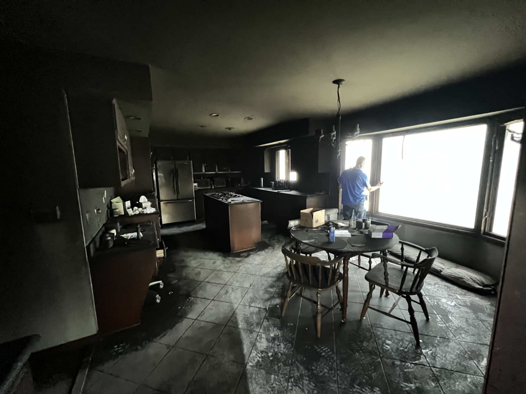 After fire damage impacted the main level, the kitchen was completely reimagined with a fresh layout and a brighter, more functional design.